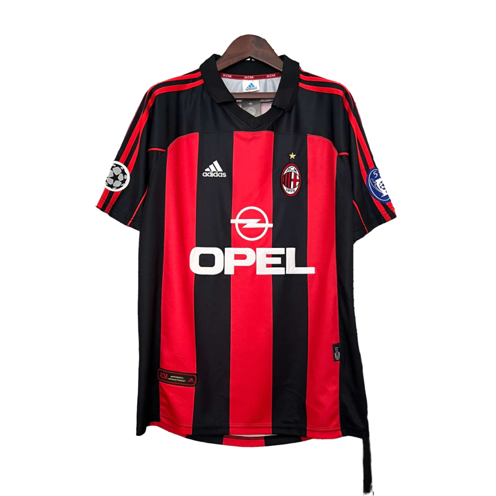 Camiseta de futebol titular retrô do AC Milan 2000-2001