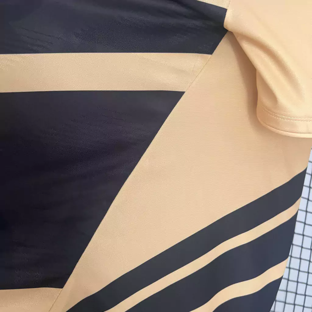 Assim como no ano passado com a camisa azul celeste, o manto reserva é a grande novidade da coleção, trazendo o dourado como cor predominante, "reluzindo em homenagem ao centenário do clube". As quatro faixas são novamente pretas, enquanto a gola e os punhos são dourados.