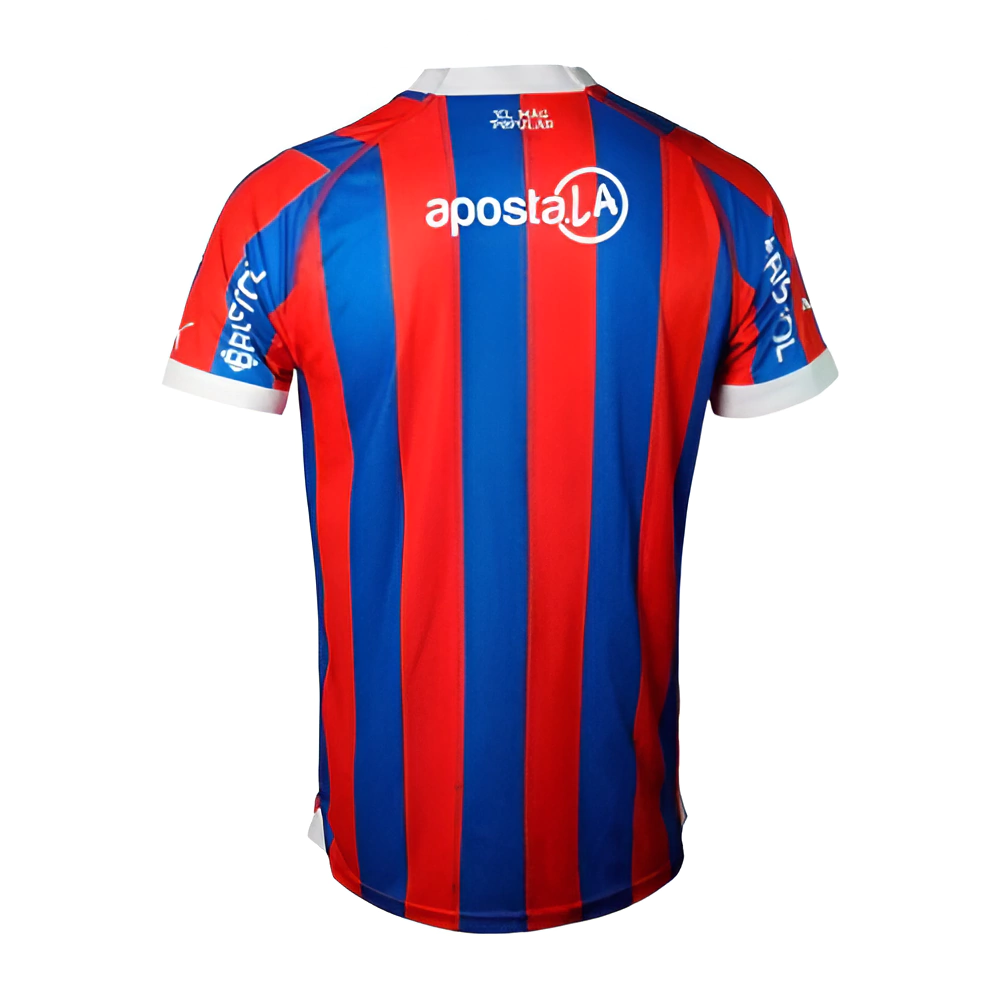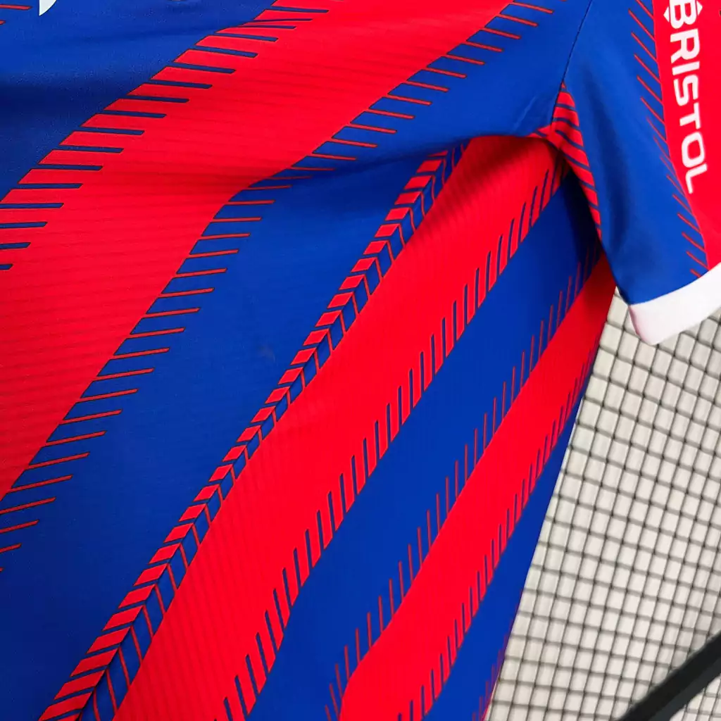 A nova camisa titular do Cerro Porteño resgata seu design clássico com listras verticais, alternando entre vermelho e azul royal.