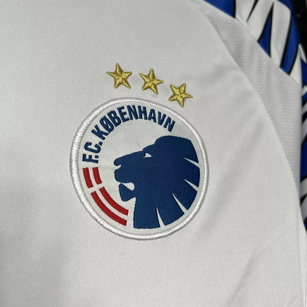 A camisa titular do FC Copenhagen para a temporada apresenta um design predominantemente branco com gola em V na mesma cor.