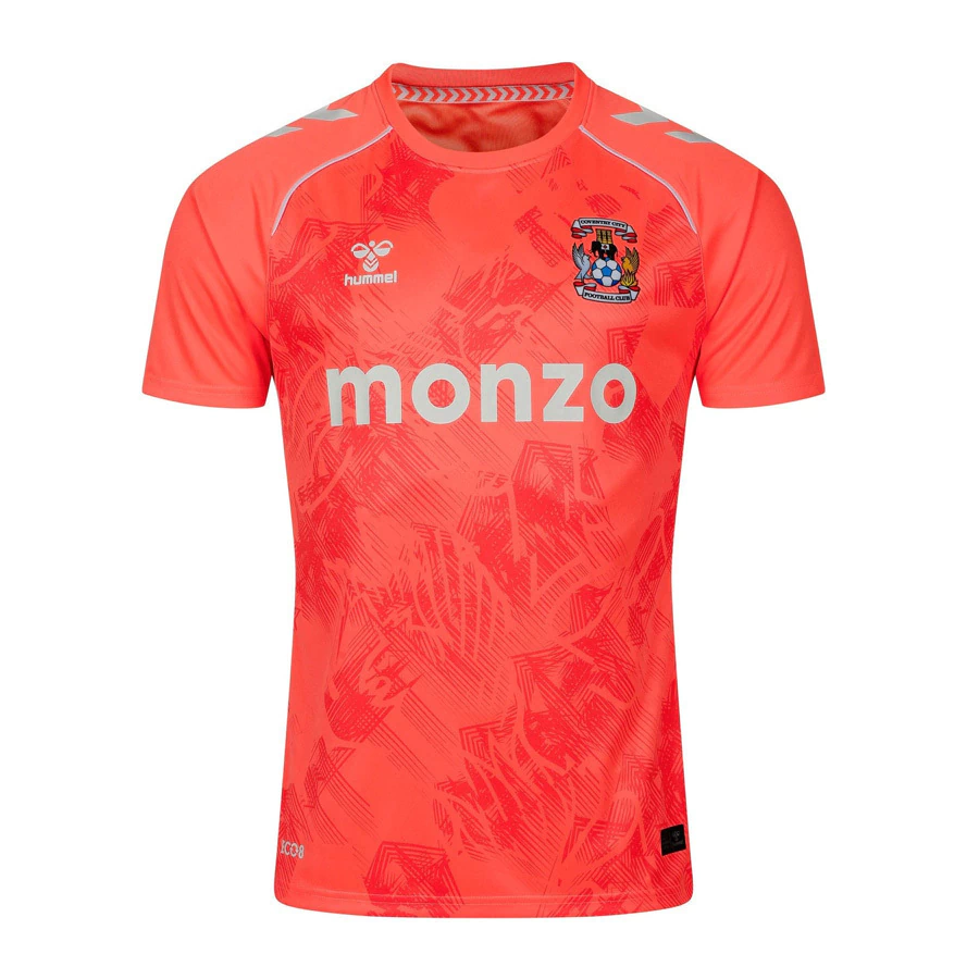 A nova camisa reserva do Coventry City aposta no laranja coral como cor principal e traz um padrão gráfico no corpo inspirado no escudo.