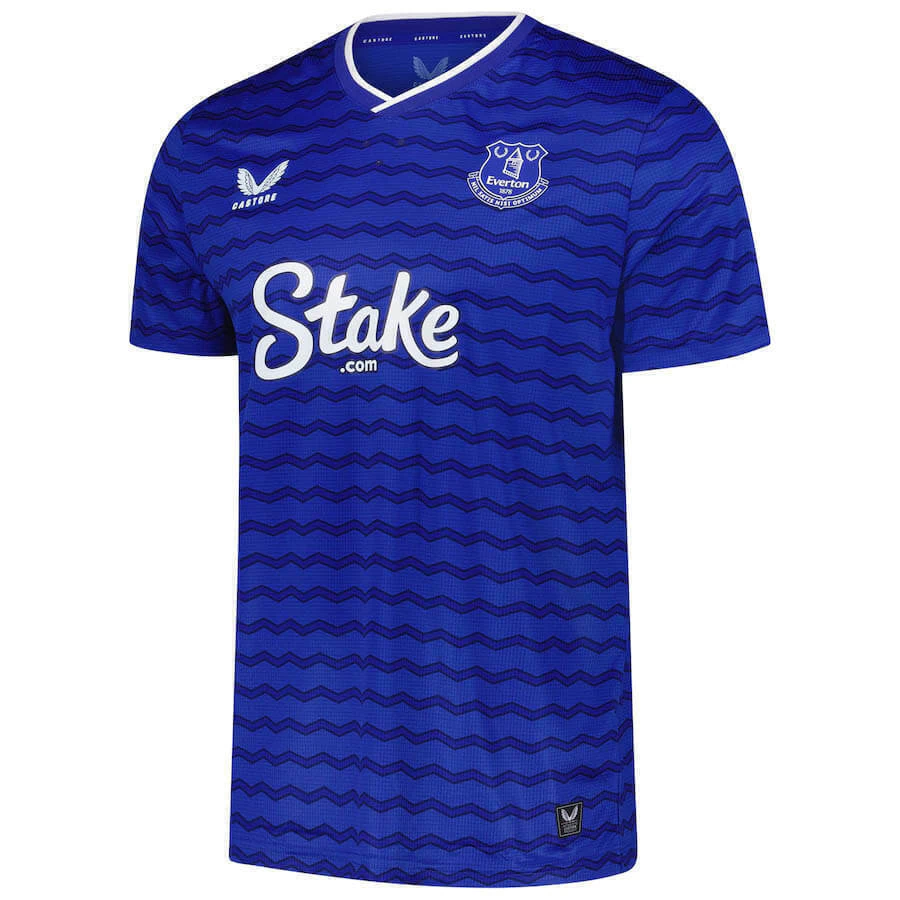Nova camiseta de futebol titular do Everton para temporada 25/26.