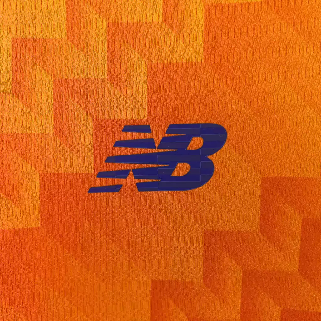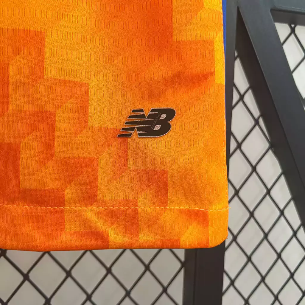 A gola redonda e os punhos são azuis, assim como as faixas laterais. O logo da New Balance, em azul, está no lado direito do peito, enquanto o escudo dos Dragões, em sua versão padrão atual, está no lado esquerdo.