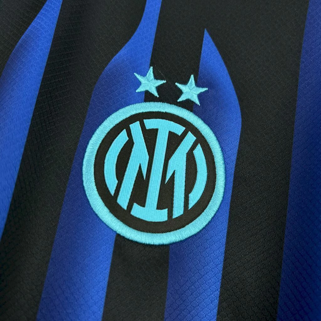 Nova camiseta de futebol titular do Inter de Milão para temporada 25/26.