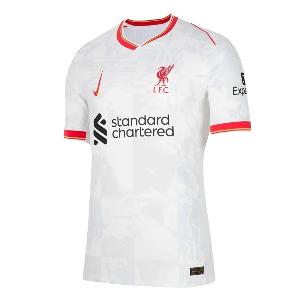 A nova camisa alternativa do Liverpool para a temporada é construída com base no design padrão da marca para as camisas de terceira opção e tem como cor principal o branco.