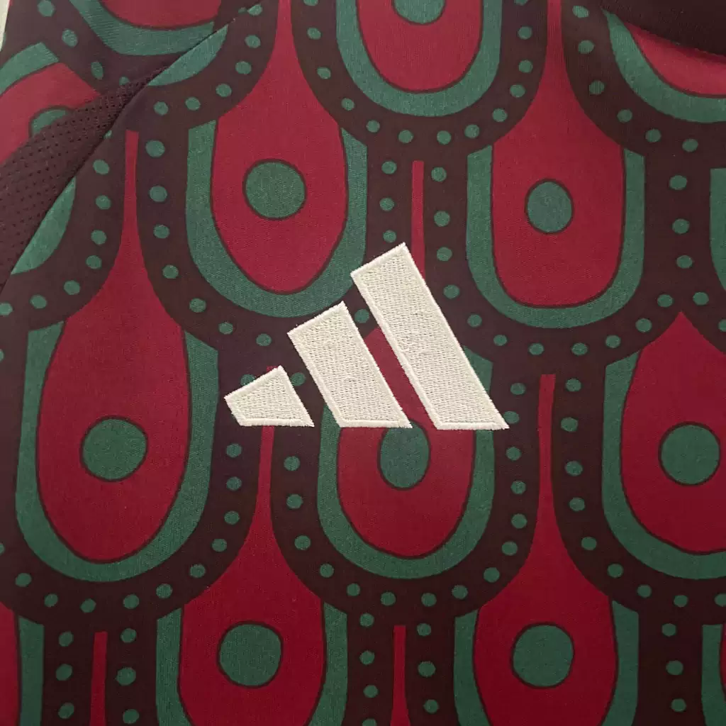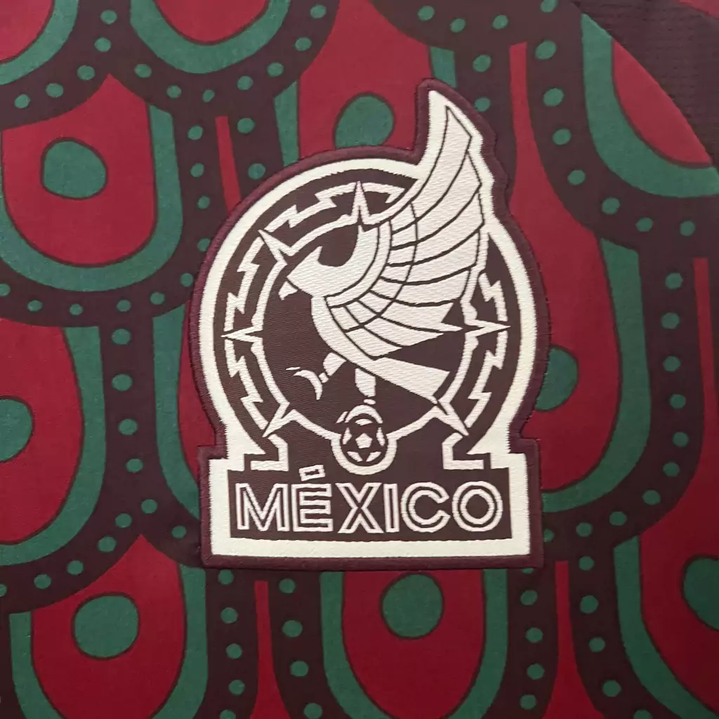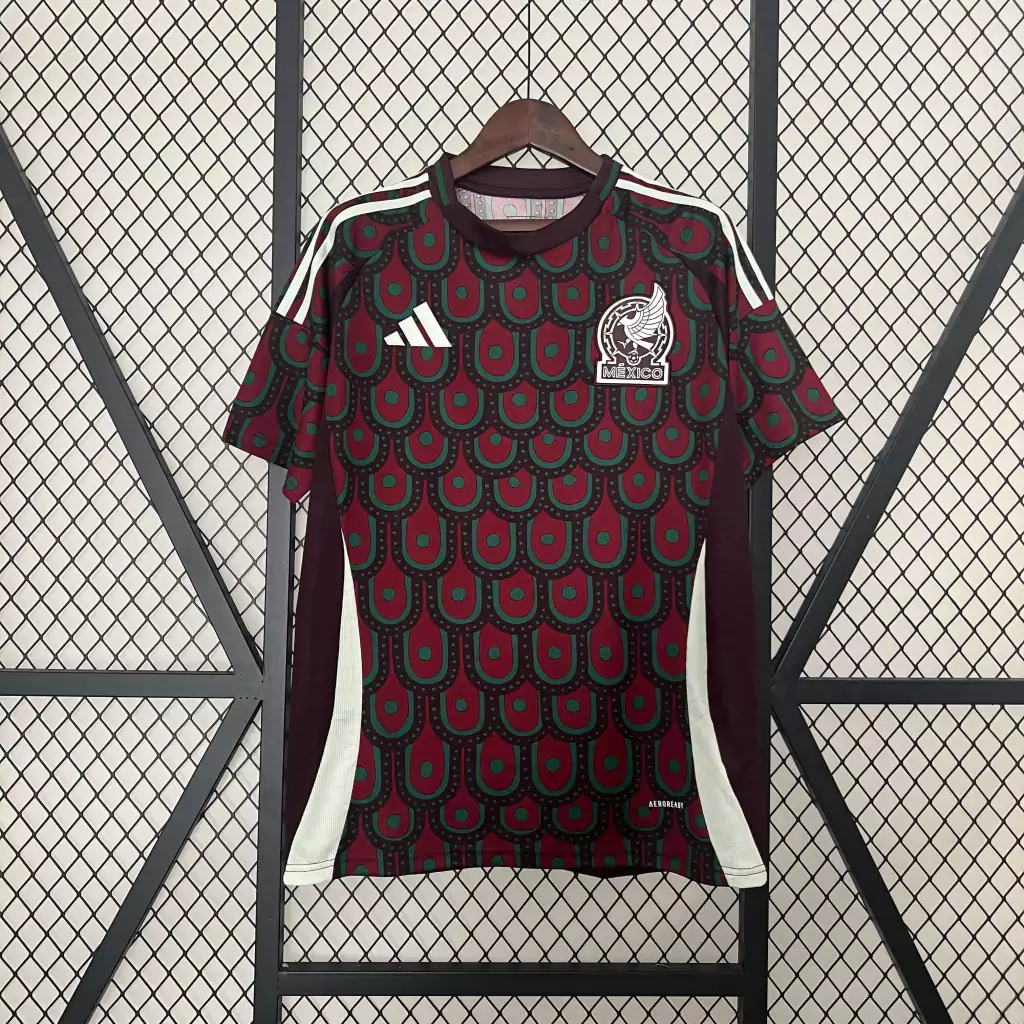 A camisa titular do México para esta temporada é marcada por um design ousado, com grená substituindo o verde tradicional, inspirado nas penas das águias, símbolo da seleção.
