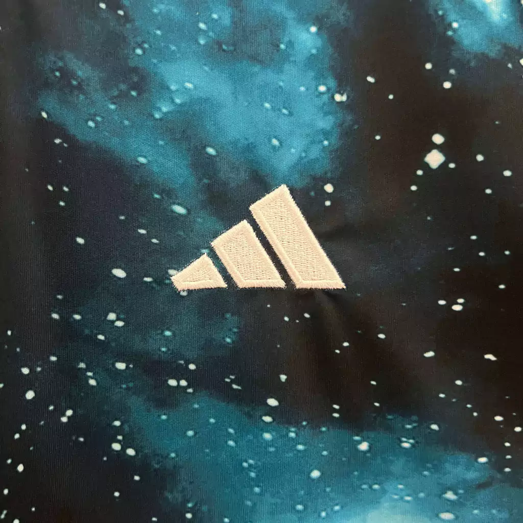 O escudo é aplicado no lado esquerdo, com a mobelha, símbolo do clube, também reproduzida na nuca. O logo da Adidas e o patrocinador, assim como os patches e a numeração e o nome dos atletas na nuca, aparecem em branco.