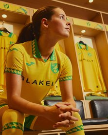 A camisa titular do Norwich City aposta em uma estética inspirada nos anos 90, com o amarelo predominante.