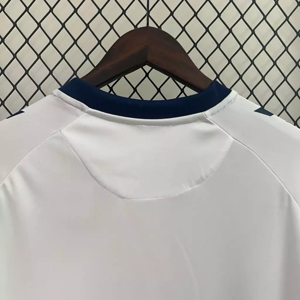 A nova camisa titular do Tenerife mantém o design tradicional do clube, com um fundo branco e o X azul na frente, simbolizando a cruz de Santo André.