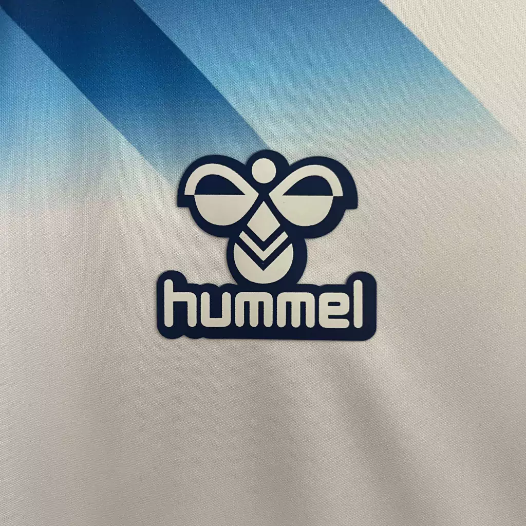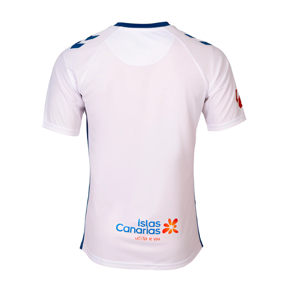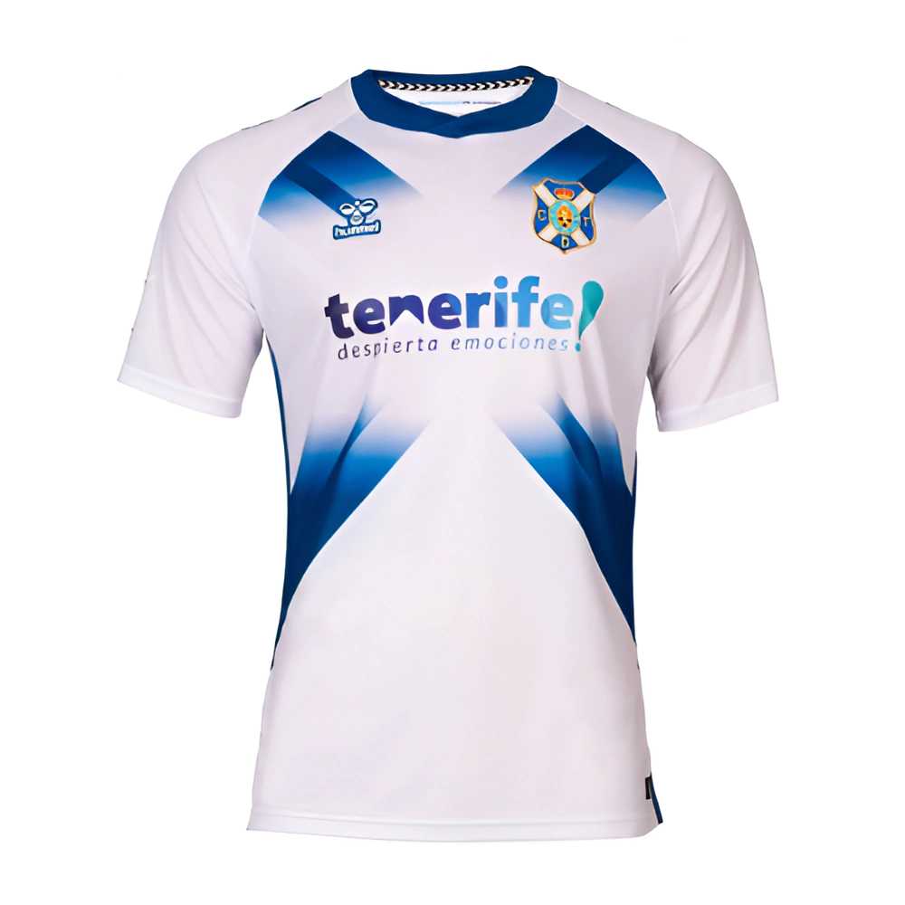A Hummel estampa seu logo em branco com contorno azul no lado direito do peito, enquanto o escudo do Tenerife é colocado no lado esquerdo, em sua versão atual padrão.