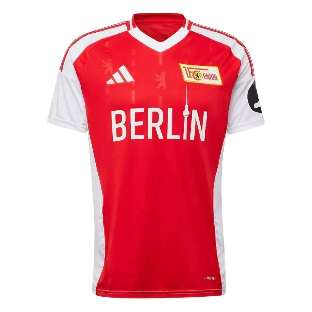 A nova camisa titular do Union Berlin mantém o design característico da marca para a temporada, com o vermelho como cor predominante.