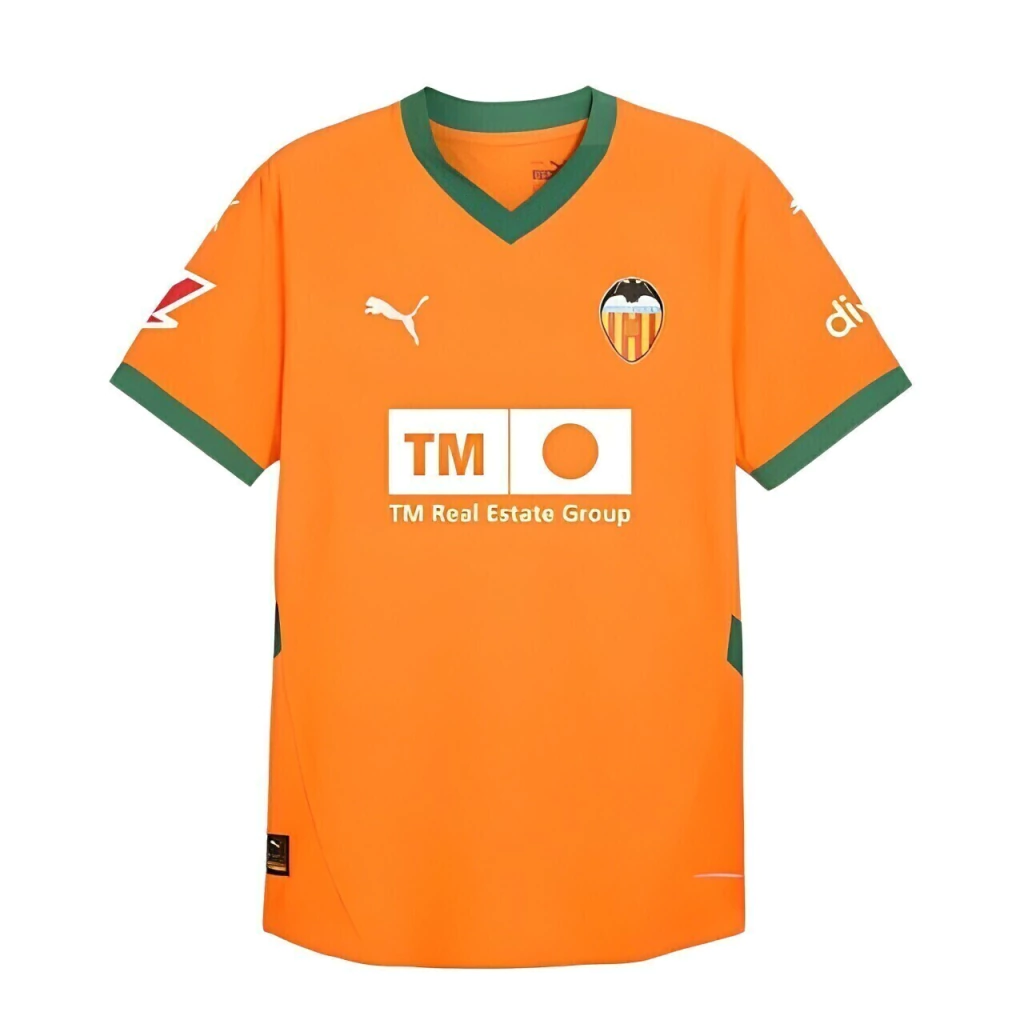 A camisa alternativa do Valencia é predominantemente laranja, uma cor que representa a cidade, conforme destacado pelo clube.