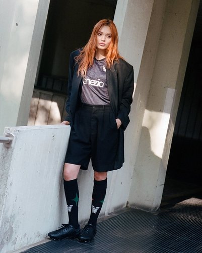 A camisa titular do Venezia FC aposta em um visual sofisticado, com base preta e grafismos tonais inspirados em mapas do século XV, evocando o passado intelectual da Sereníssima.