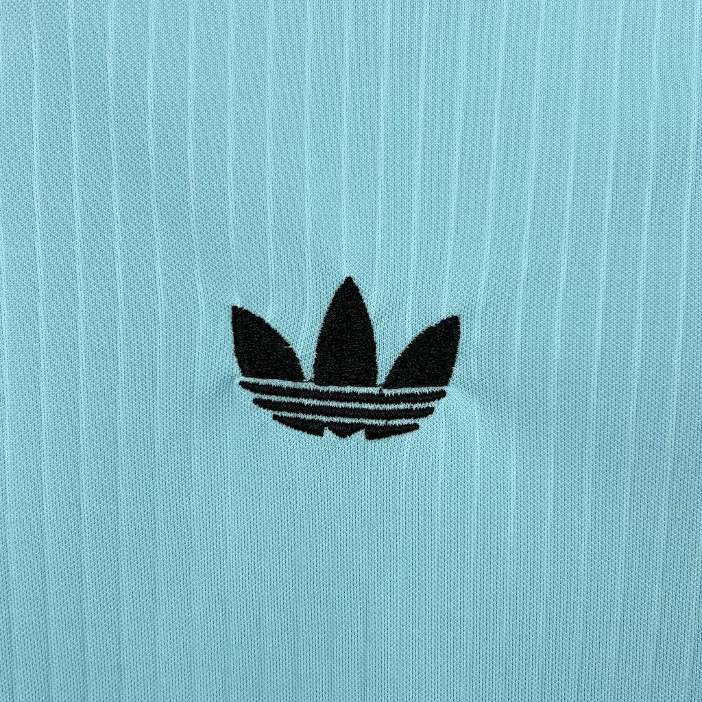 Do lado direito, aparece o símbolo da Adidas em preto.