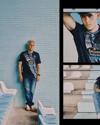A camisa AWAY do Celta de Vigo para 2025 tem azul-marinho como base e traz a tradicional faixa diagonal em azul-claro e branco, inspirada na bandeira galega. Dentro dela, uma textura de ondas remete ao mar de Vigo.